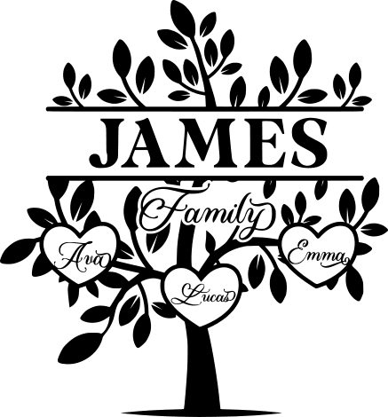 family tree, monogram frame, hearts, custom name – free svg files for members